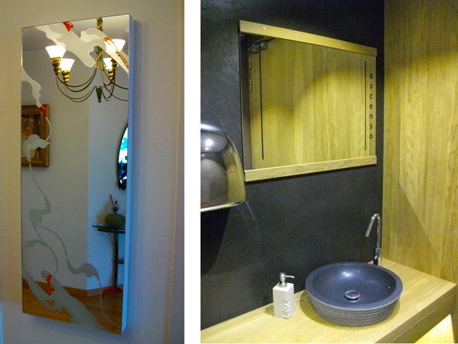 Miroirs décor sablé, pointes de couleur à l'encre.