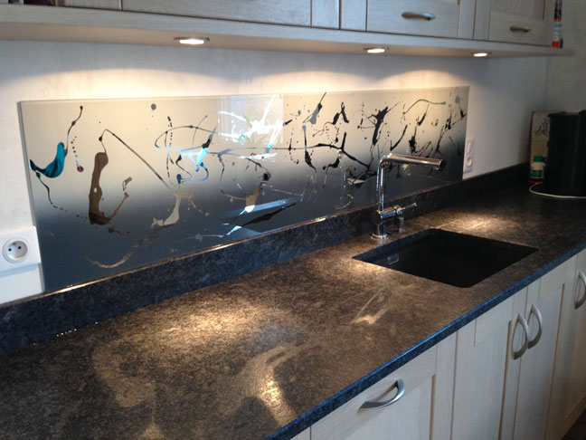 Graphiques ou unis, le laquage du verre est mis en œuvre selon la destination, et vos désirs. Les couleurs peuvent être accordées à votre décoration d’après les nuanciers RAL ou Guittet soit environ 5000 couleurs. Notre créativité, nos techniques et nos savoir faire vous permettent d’oser des dégradés, des dessins géométriques ou autres effets graffitis. Des effets 3 D peuvent être obtenus.