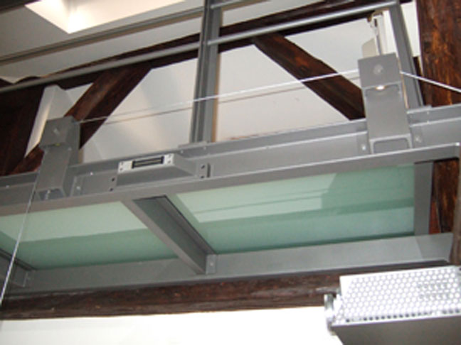 Palier de fermeture mezzanine verre extra blanc.