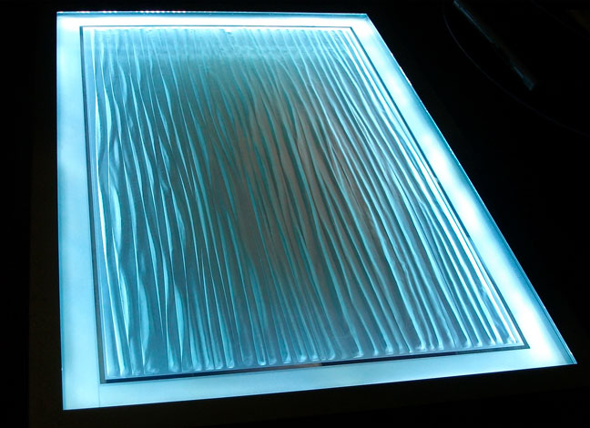 Palier décor verre gravé vague.