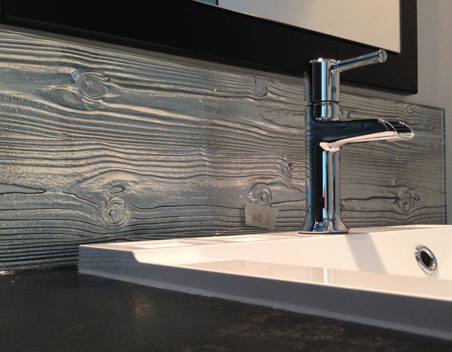 Mur décoration verre thermoformé, sablé.