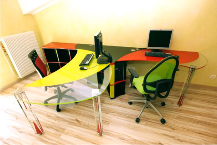Graphiques ou unis, le laquage du verre est mis en œuvre selon la destination, et vos désirs. Les couleurs peuvent être accordées à votre décoration d’après les nuanciers RAL ou Guittet soit environ 5000 couleurs. Notre créativité, nos techniques et nos savoir faire vous permettent d’oser des dégradés, des dessins géométriques ou autres effets graffitis. Des effets 3 D peuvent être obtenus.