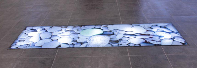 Palier décor verre gravé vague.