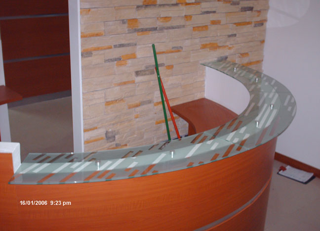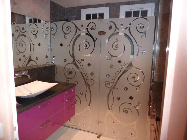 Avec le sablage, il devient possible de sculpter, de percer, de réaliser des motifs, des logos, des textes, des lignes, extrêmement précis sur la surface du verre. Le sablage sur les deux faces du verre permet un effet visuel cinétique intéressant en modifiant la perception selon l’angle du regard.
