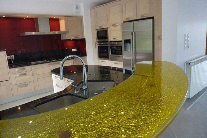 Comptoir verre crash film de couleur.