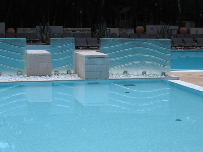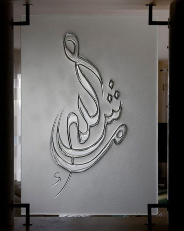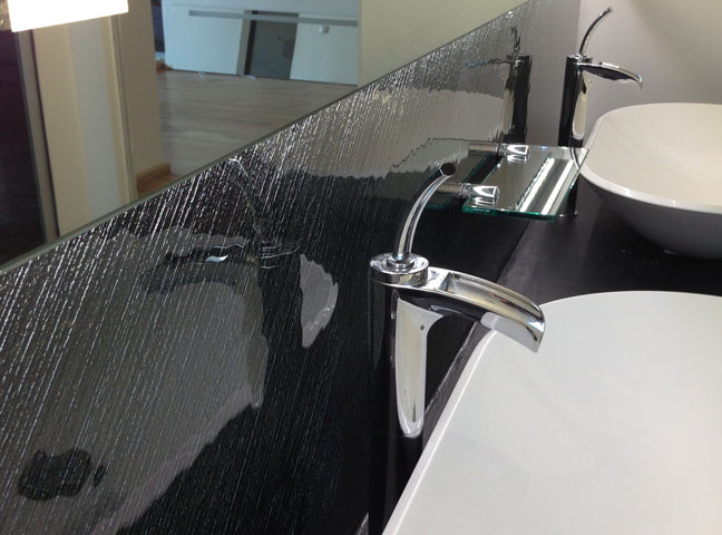 Mur décoration verre thermoformé, sablé.