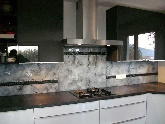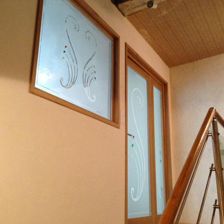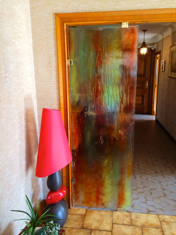 Ensemble fenêtre et porte décor sablé pointe de couleurs encre.